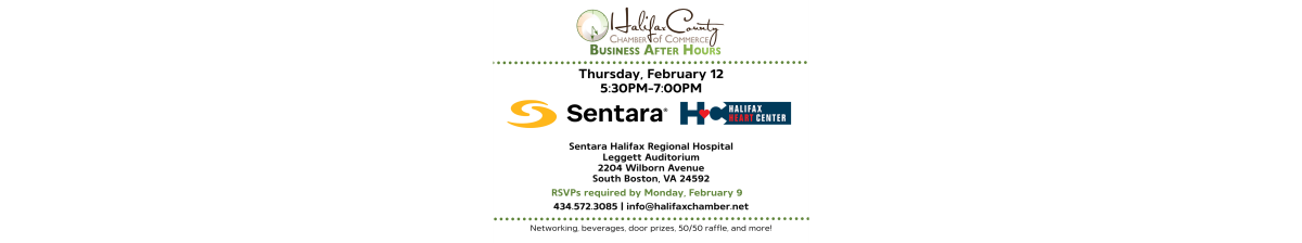 RSVP by calling (434) 572-3085 or emailing info@halifaxchamber.net.